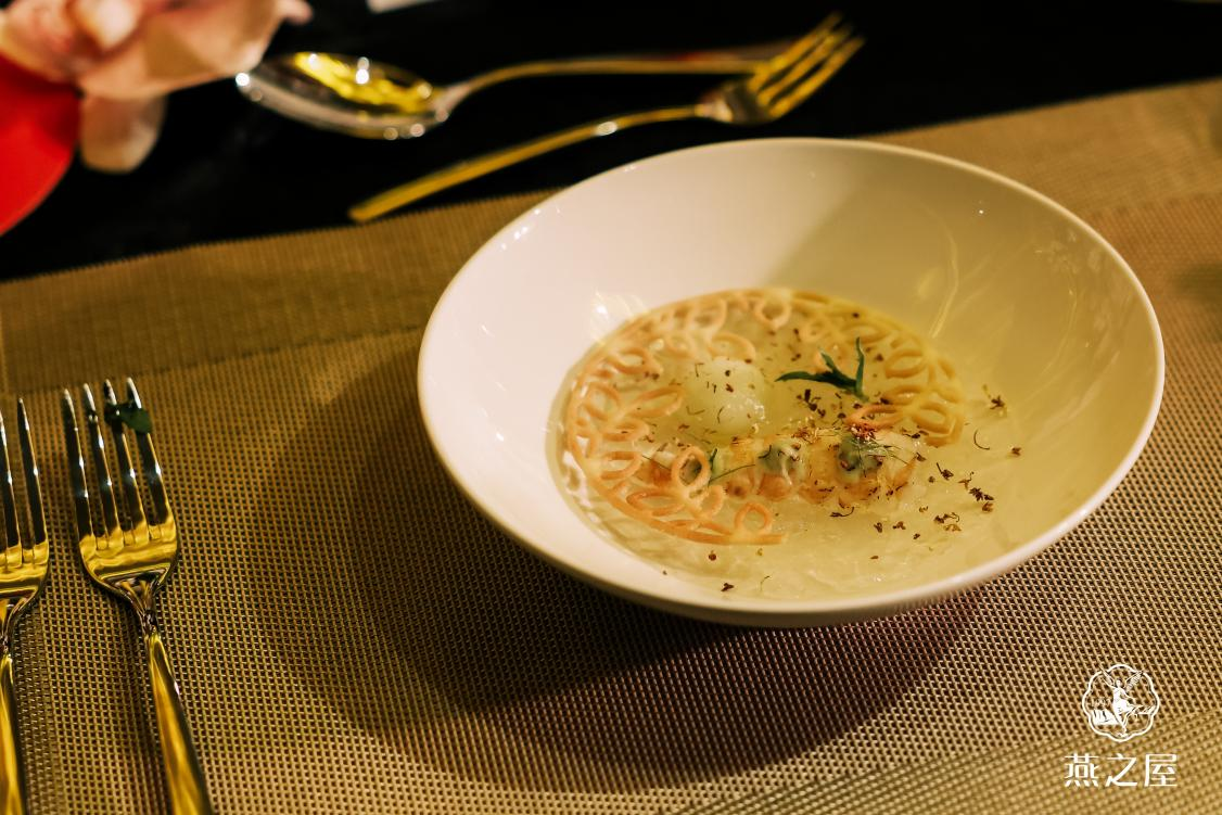 在26年的探索和創(chuàng)新中,燕之屋堅持“源于天然,美與健康”的理念,將文化傳承、生活理念融入一碗碗燕窩之中,綻放燕窩的多元食養(yǎng)魅力與東方文化之美。暮色低垂,由燕之屋與雙米其林星廚合作的高定燕窩美饌品鑒晚宴拉開序幕。其中,米其林餐廳主廚李陽和主廚梁建文帶領(lǐng)的洲際酒店中餐團(tuán)隊為燕之屋特別研發(fā)兩道燕窩菜品——海鰲蝦佐番茄燕窩啫喱與開心果奶凍配燕窩,以燕之屋燕窩為核心食材,打造至臻風(fēng)味,不僅帶給賓客們視覺、嗅覺與味覺上的全新享受,更展現(xiàn)了燕窩作為傳統(tǒng)滋補(bǔ)食材在現(xiàn)代高端料理中的創(chuàng)新可能性。海鰲蝦佐番茄燕窩啫喱,以番茄的酸爽、鰲蝦的鮮甜,凸顯燕窩的清潤與細(xì)膩,精致清新,打開食客味蕾;開心果奶凍配燕窩,將開心果的醇厚、堅果的微甜,巧妙搭配燕窩的絲滑質(zhì)地,細(xì)品之下,香氣滿溢。